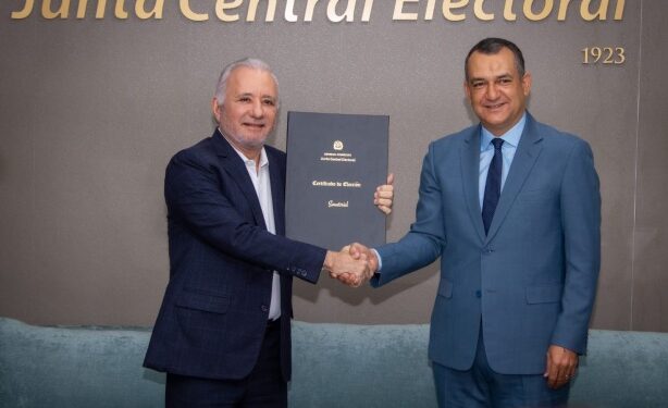 Tras recibir el certificado de la Junta Central Electoral (JCE) que lo acredita como senador reelecto del Partido Revolucionario Moderno (PRM), Taveras Guzmán recibió el documento de la mano del presidente de la JCE, Román Jáquez, acompañado de diputados, alcaldes y altos dirigentes del PRM, movimientos y partidos aliados.
