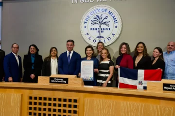 Fue entregada a la cónsul general de la República Dominicana en Miami, Geanilda Vásquez, de manos del alcalde de la ciudad, Francis Suárez, en un acto en la sala capitular del ayuntamiento.