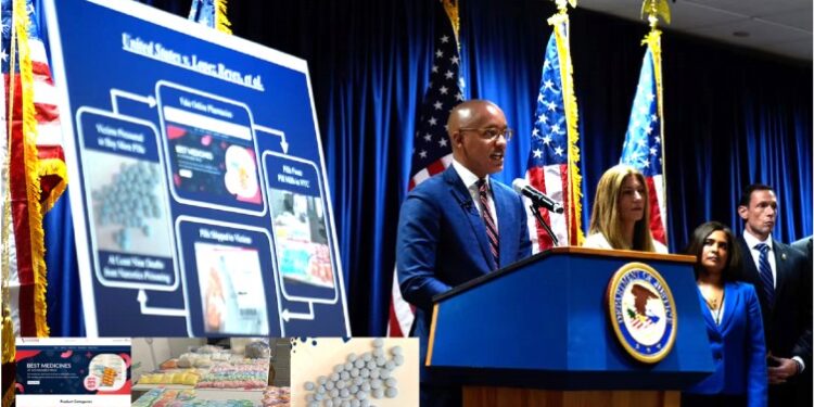 EL NUEVO DIARIO, NUEVA YORK.- El fiscal federal del distrito Sur en Manhattan, Damian Williams anunció el lunes junto a otras autoridades el desmantelamiento de una banda internacional que con sede en la República Dominicana supuestamente traficaba medicinas falsas y drogas en internet que distribuían en numerosos países, incluyendo India.