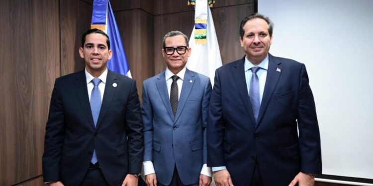 El ministro de Trabajo, Eddy Olivares, tomó posesión como presidente del Consejo Nacional de Seguridad Social (CNSS). Le acompañan el ministro de Salud Pública y vicepresidente de la entidad, Víctor Atallah y el gerente general del CNSS, Edward Guzmán