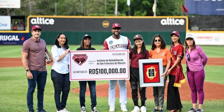 San Francisco de Macorís. – El equipo de béisbol profesional Gigantes del Cibao reconoció al Centro de Rehabilitación San Francisco por su labor solidaria y compromiso con la comunidad, con la entrega de una placa conmemorativa y un aporte económico de RD$100,000.