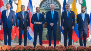 Al lado de Biden estaban sentados el presidente de Costa Rica, Rodrigo Chaves Robles, que se ha convertido en uno de los principales aliados de EE.UU. para promover la APEP, y también el presidente de Uruguay, Luis Lacalle Pou. El resto de líderes estaban sentados alrededor en una mesa en forma de U.