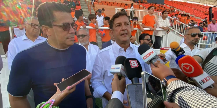 El empresario habló durante su participación en la clínica de futbol impartida por Diego Forlán, exfutbolista uruguayo y Balón de Oro al mejor jugador del Mundial 2010, en el campo del Cibao Fútbol Club, de la ciudad, acompañado por Collado.