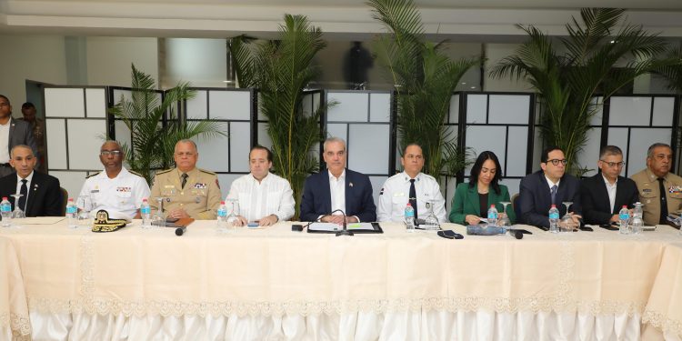 En compañía del mandatario se encuentran el ministro de la Presidencia, José Ignacio Paliza; el ministro de Defensa, teniente general Carlos Antonio Fernández Onofre; la Procuradora General de la República, Yeni Berenice Reynoso, vía Zoom; el comandante general de la Armada de República Dominicana, vicealmirante Juan Bienvenido Crisóstomo Martínez; el director general de Migración, vicealmirante Luis Rafael Lee Ballester; el presidente de la Dirección Nacional de Control de Drogas, vicealmirante José Manuel Cabrera Ulloa; el comisionado ejecutivo para la Reforma Policial, Luis Ernesto García Hernández, y los viceministros de la Presidencia para Proyectos Especiales y Coordinación de Seguridad, Roger G. Pujols y de Función Pública, Grey Peña.