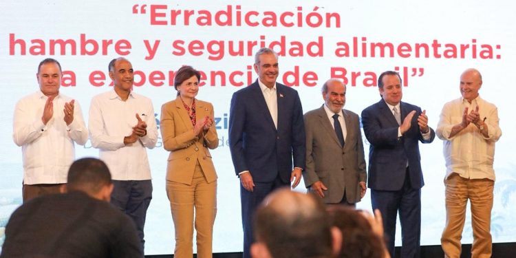 Santo Domingo.– El presidente Luis Abinader y la vicepresidenta Raquel Peña participaron este miércoles en la conferencia magistral ofrecida por el economista brasileño José Graziano da Silva, referente global en políticas de erradicación del hambre, quien validó los avances alcanzados por la República Dominicana en materia de seguridad alimentaria y destacó el fortalecimiento del modelo de alimentación escolar como una buena práctica con impactos comprobados.