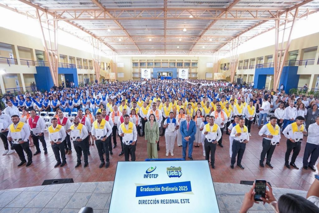 El acto forma parte del ciclo de graduaciones ordinarias, con las cuales el INFOTEP ha entregado a la sociedad 5,651 técnicos y 758 docentes, para un total de 6,409 nuevos egresados en las regiones Norte, Gran Santo Domingo y Distrito Nacional, Sur y Este.