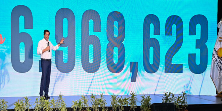 “Y así obtenemos el gran número: 6,968,623 visitantes en los primeros 7 meses del año. Lo volvemos hacer”, proclamó el funcionario.